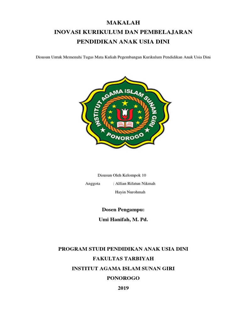 Doc Makalah Pengembangan Kurikulum Anak Usia Dini Wayang Disusun Guna Memenuhi Tugas Mata Kuliah Pengembangan Kurikulum Anak Usia Dini Dosen Pengampu Dr Pangeran Berkacu Academia Edu